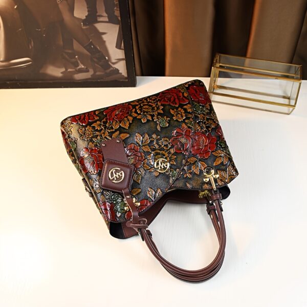 Step into a world where artistry meets elegance with this hand-painted floral masterpiece. Feel the whispered compliments as you glide through coffee dates, board meetings, and evening soirées. The rich burgundy roses and golden leaves don't just carry your essentials—they carry your confidence, your story, your dreams.